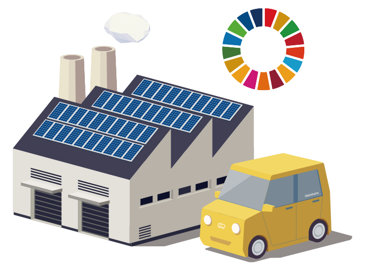 Hakobuneは、EVの企業支給制度と再生エネルギーによる職場充電を提供する会社です。