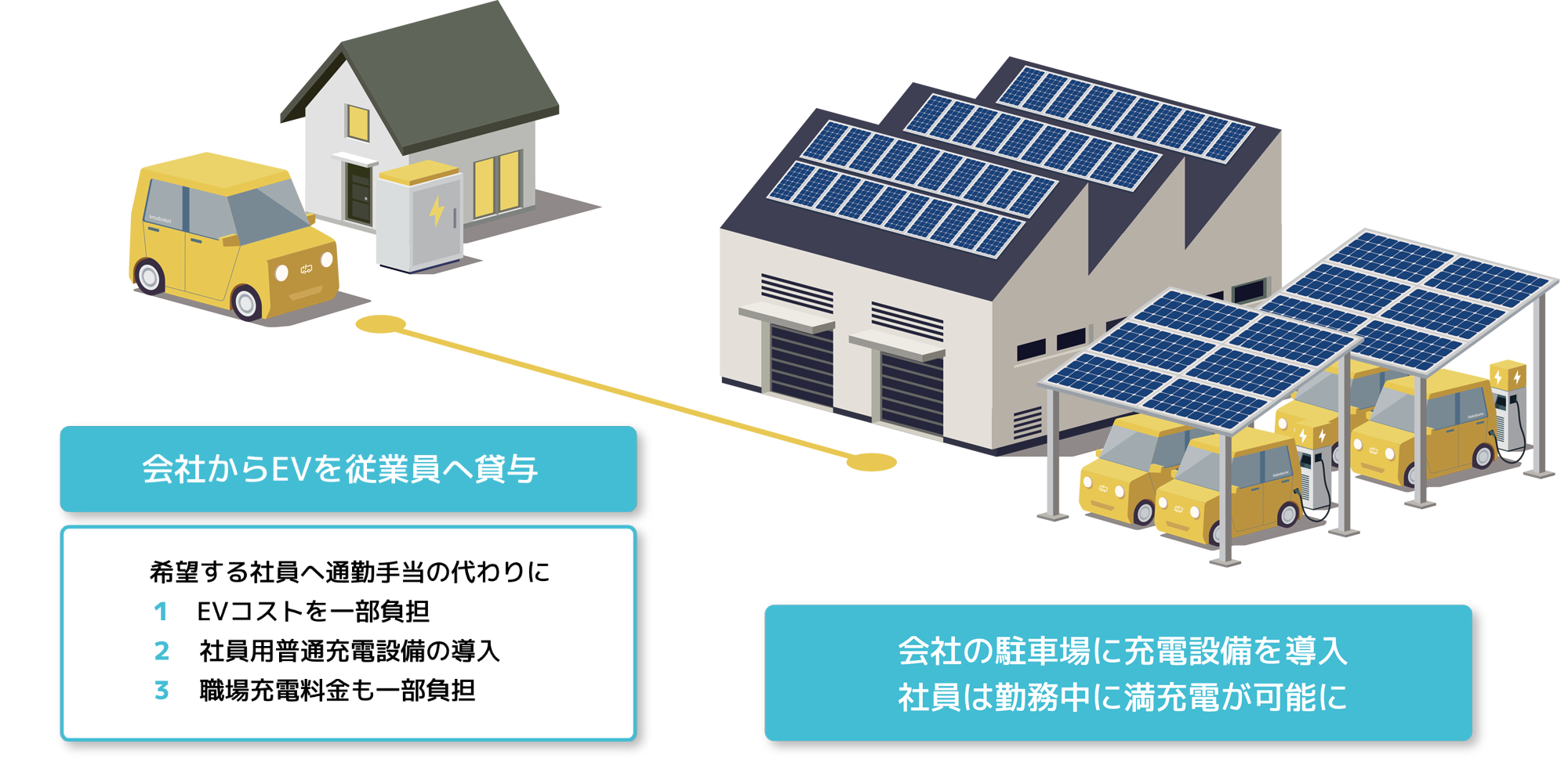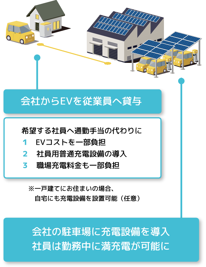 企業によるEVの支給と職場充電に切り替えていただくことで、